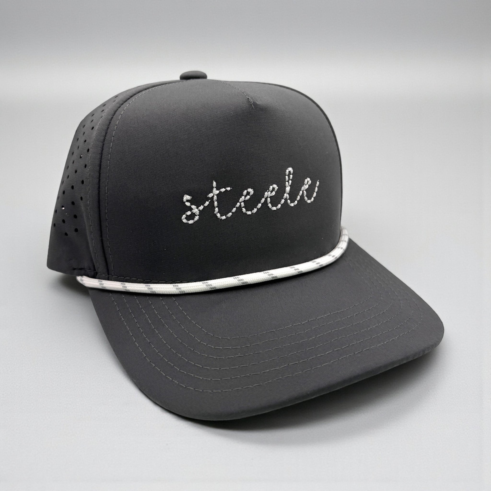 Embroidered Name Snapback Hat | Laser Perforated | Personalized Infant Baby Toddler Kids Adult Youth | Line Stitched | Custom Twill Rope Cap