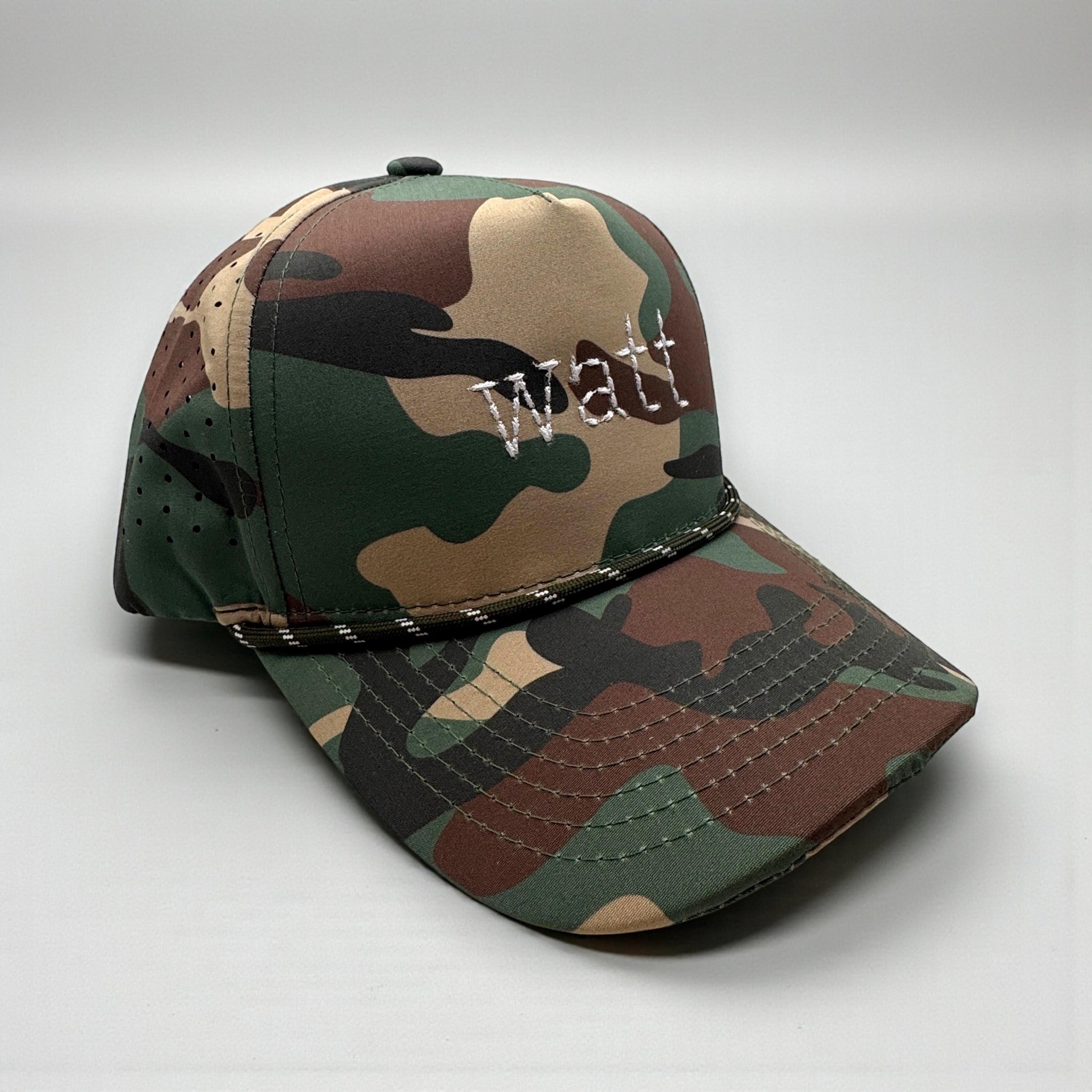Performance Rope Snapbacks: 5 panel, curved bill, laser perforated back, stylish twill pattern rope, adjustable snaps.